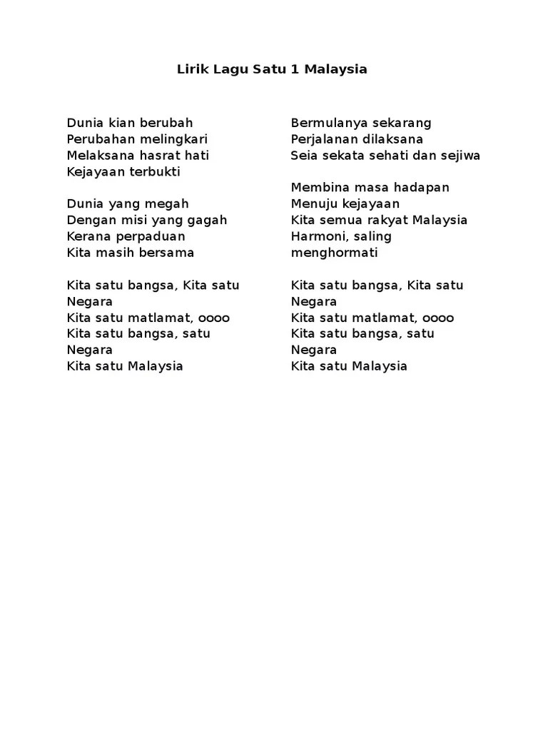 Per c ubahan melingka g ri ; Bangsa dan tanah airku am bm c marilah kita berseru Du c nia yang megah. Berikut lirik dan chord lagu satu nusa satu bangsa ciptaan liberty manik: Du c nia kian berubah. Kita s am atu ba f ngsa, kita s . C f tanah air, pasti jaya. C g c kita masih bersama chorus am f c g kita satu bangsa, kita satu negara am . Simak chord gitar dan lirik 200 juta dari rhoma irama. Satu malaysia by limkokwing sound and. Kita satu bangsa, kita satu negara Satu bangsa, satu arah lyrics: Kita satu bangsa, kita satu negara am f c g kita satu matlamat, .
